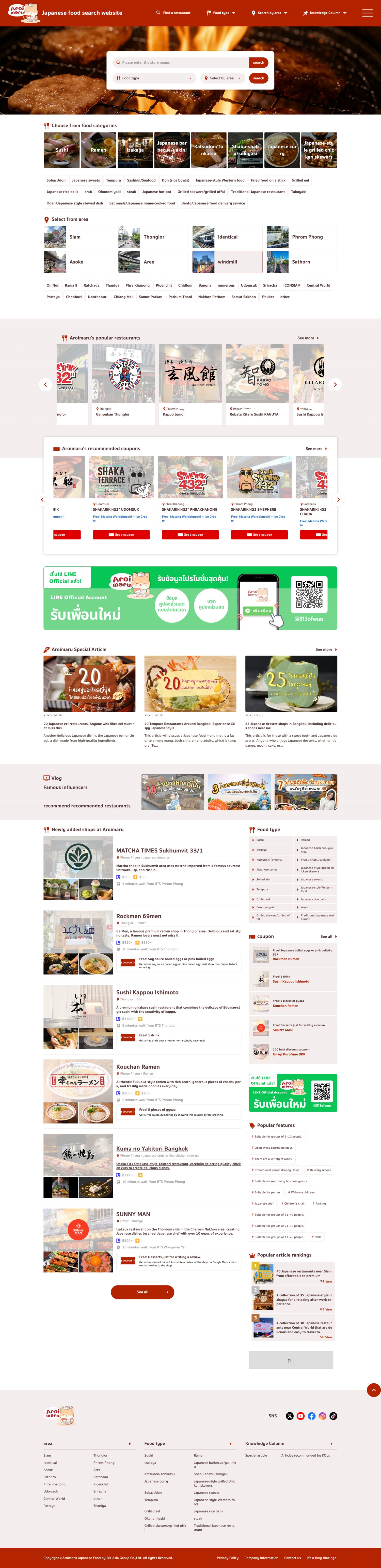 株式会社Biz Asia Group様は、東南アジア市場に特化したマーケティング支援を提供するタイで大注目の日経企業です。 タイ・ベトナム・フィリピンなどの現地インフルエンサー(KOL)を活用したプロモーション、現地メディア「Siba Japan」やMEO対策AIツール「口コミマル」など、多岐にわたるサービスを展開しています。 今回は、タイ市場向けに現地プロモーションを強化するために、タイ国内の日本料理レストランが検索できるポータルサイトの制作を担当させていただきました。